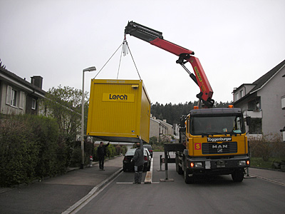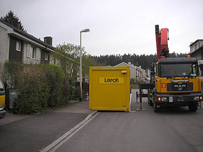 bald ist baubeginn an der buchackerstrasse. das baubüro wurde heute morgen schon plaziert.